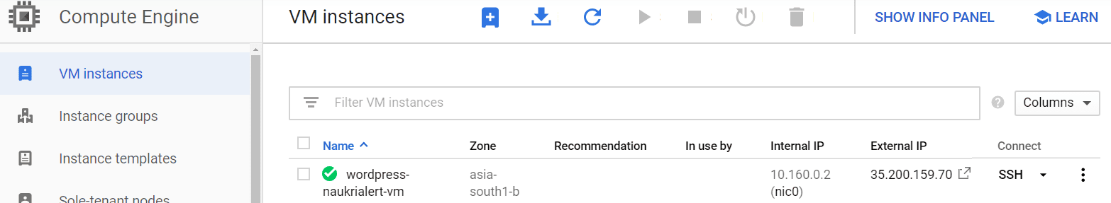 Just open up another Google Cloud Platform tab to click on the hamburger menu above the left-side and navigate for Compute Engine > VM Instances. Here is our external IP Address, Copy this.